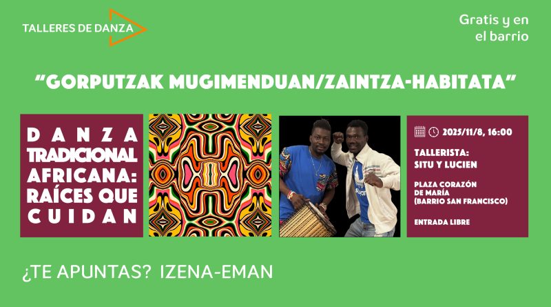 Wikitoki y la asociación African Vibes Dance, dentro de su residencia «Cuerpos en tránsito / hábitat de cuidado«, invita a participar en talleres de danza gratuitos para explorar cómo el movimiento genera redes de cuidado y pertenencia. A través de estos talleres abiertos dirigidos a vecinas y vecinos de Bilbao, se crearán partituras de movimiento y micro rutinas colectivas.